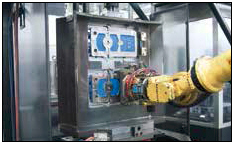 方案: 雙工位鉗組成多臺機(jī)床托盤系統(tǒng)進(jìn)行不間斷生產(chǎn)。