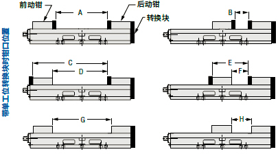 ![]() 圖示有備選的單工位轉(zhuǎn)換塊。DL800型鉗在使用單工位轉(zhuǎn)換塊時,可以最大利用虎鉗的張開度。