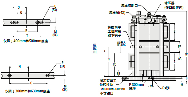 HD型液壓四面體鉗參數(shù)表 mm(in) |