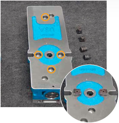 傳統(tǒng)的平鍵使用在有T型槽的機(jī)床臺(tái)面上,但現(xiàn)代機(jī)床經(jīng)常需要將平口鉗固定在孔系或者其它形式的基礎(chǔ)板上,這就需要鉗底面上有相應(yīng)的基準(zhǔn)孔。 新型平口鉗和老式的相比,底面增加了更多的便于定位的特征,除了仍可以像傳統(tǒng)平口鉗那樣在使用正弦鍵時(shí)固定在T型槽上以外,還可以使用于 2" x 2", 40mm x 40mm, 50mm x 50mm等孔系基礎(chǔ)板上。